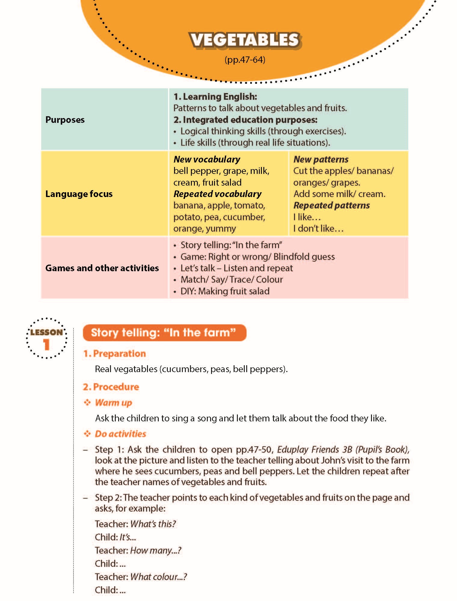 Eduplay Friends 3B - Vegetables Ngày 10/03/2023 Tải giáo án mẫu - Phiên bản tiếng Anh File PDF - File Word