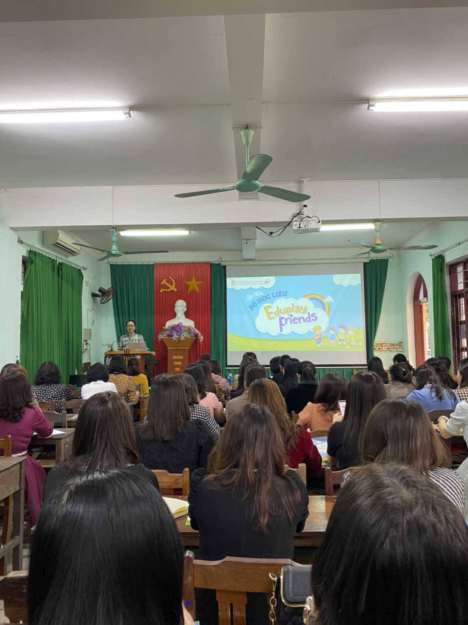 Các cán bộ quản lý, giáo viên mầm non chăm chú nghe hướng dẫn phương pháp, kĩ thuật sử dụng Bộ học liệu Eduplay Friends hiệu quả nhất: